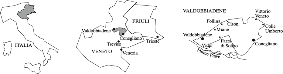 Die zwei historischen Dörfer Conegliano und Valdobbiadene gelten als Ursprungsgebiet des Prosecco. Zwischen diesen beiden Orten südlich der Alpen und der Dolomiten breitet sich eine Landschaft mit hervorragenden Weinbauböden in allen Varianten aus. Das wunderschöne Hügelgebiet, das milde Klima und die Erfahrung der Menschen, welche die Kunst der handwerklichen Schaumweinproduktion von Generation zu Generation weitergeben, machen diesen Wein so einzigartig.